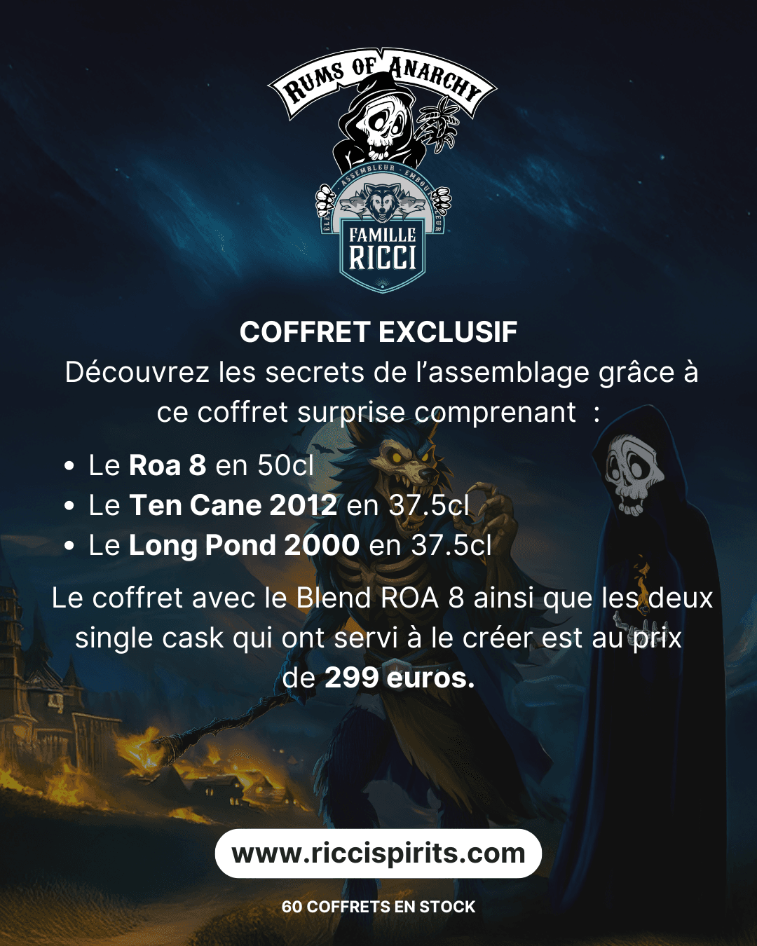 Le coffret avec le Blend ROA 8 ainsi que les deux single cask qui ont servi à le créer est au prix de 299 euros. Note de dégustation du ROA 8: Disponible le 02/10/2025 19h en ventes privées 24h Série limitée 60 coffrets numérotés. |