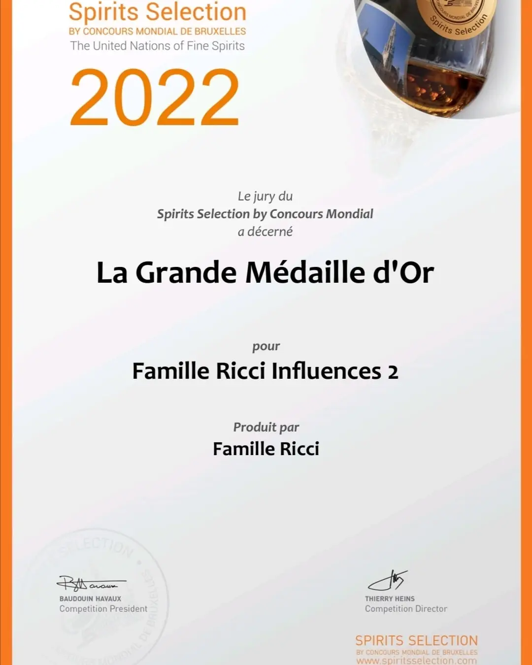 Merci à l’organisation ainsi qu’aux juges de ce prestigieux concours qu’est le Spirits Selection by concours mondial de Bruxelles.